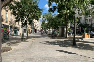 Zwischen Centre Pompidou (2min) und Les Halles (5min) Ecke Rue Quincampoix und Rue Rambuteau liegt das Studio. Die begrünte Rue Rambuteau ist Bestandteil der neuen Fußgängerzone. Sie wird gesäumt von Bistros, Restaurants und kleinen Geschäften. Auf dem Blick von der Rue Saint Martin Richtung Boulevard de Sébastopol und Les Halles in der Abendsonne ist die erste Querstraße die Rue Quincampoix, die Galerienstraße mit der schönen Passage Molière.
