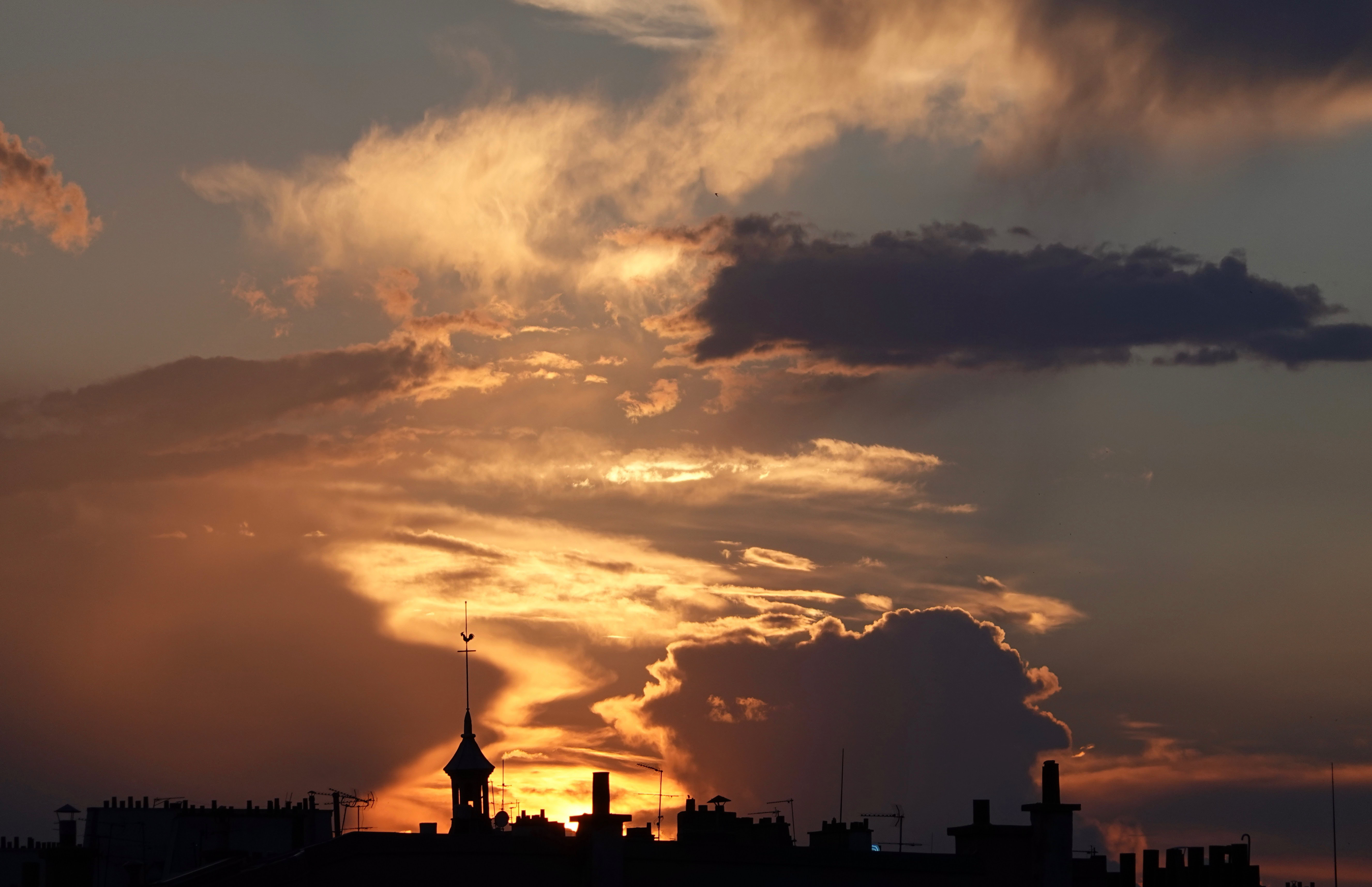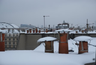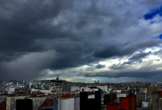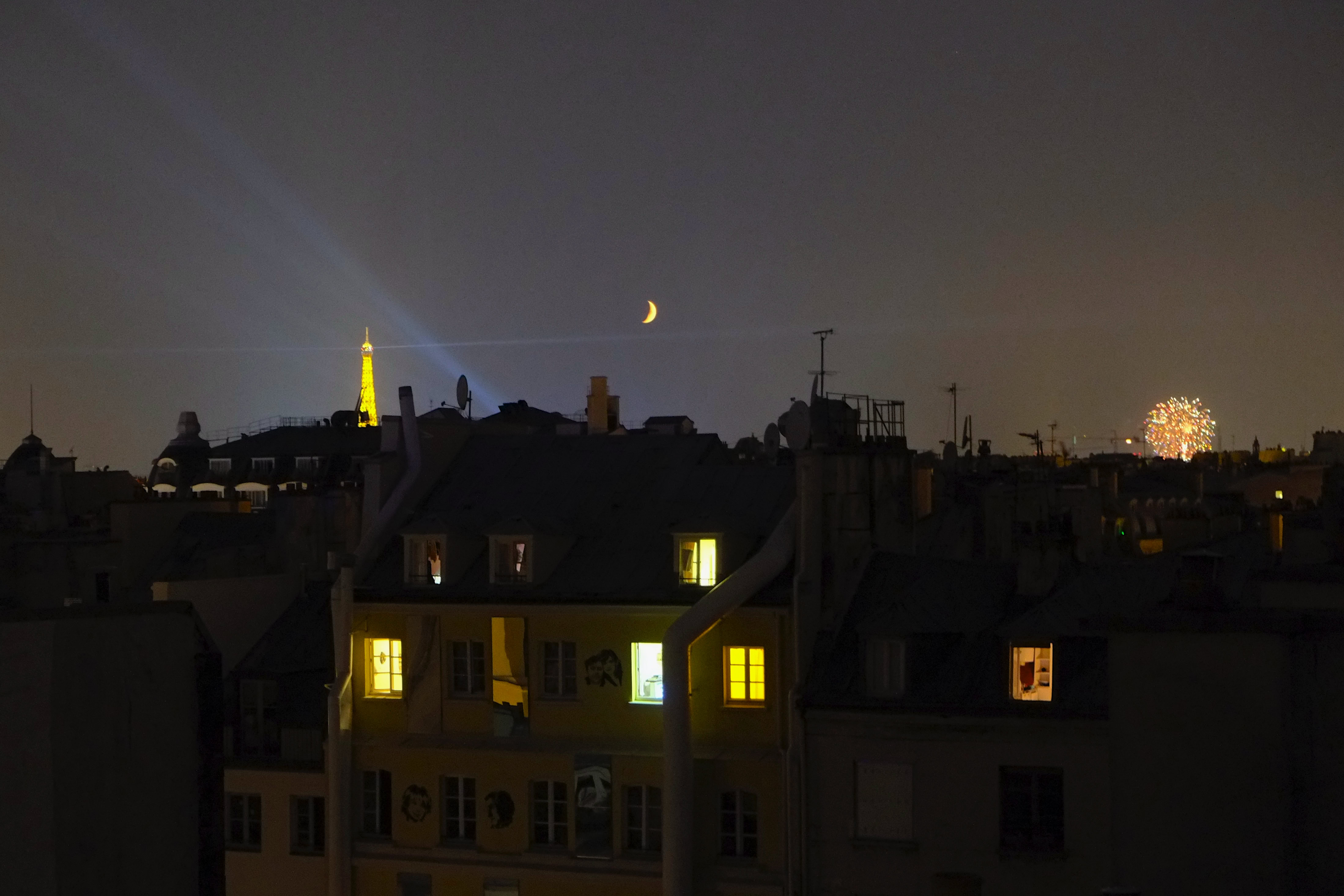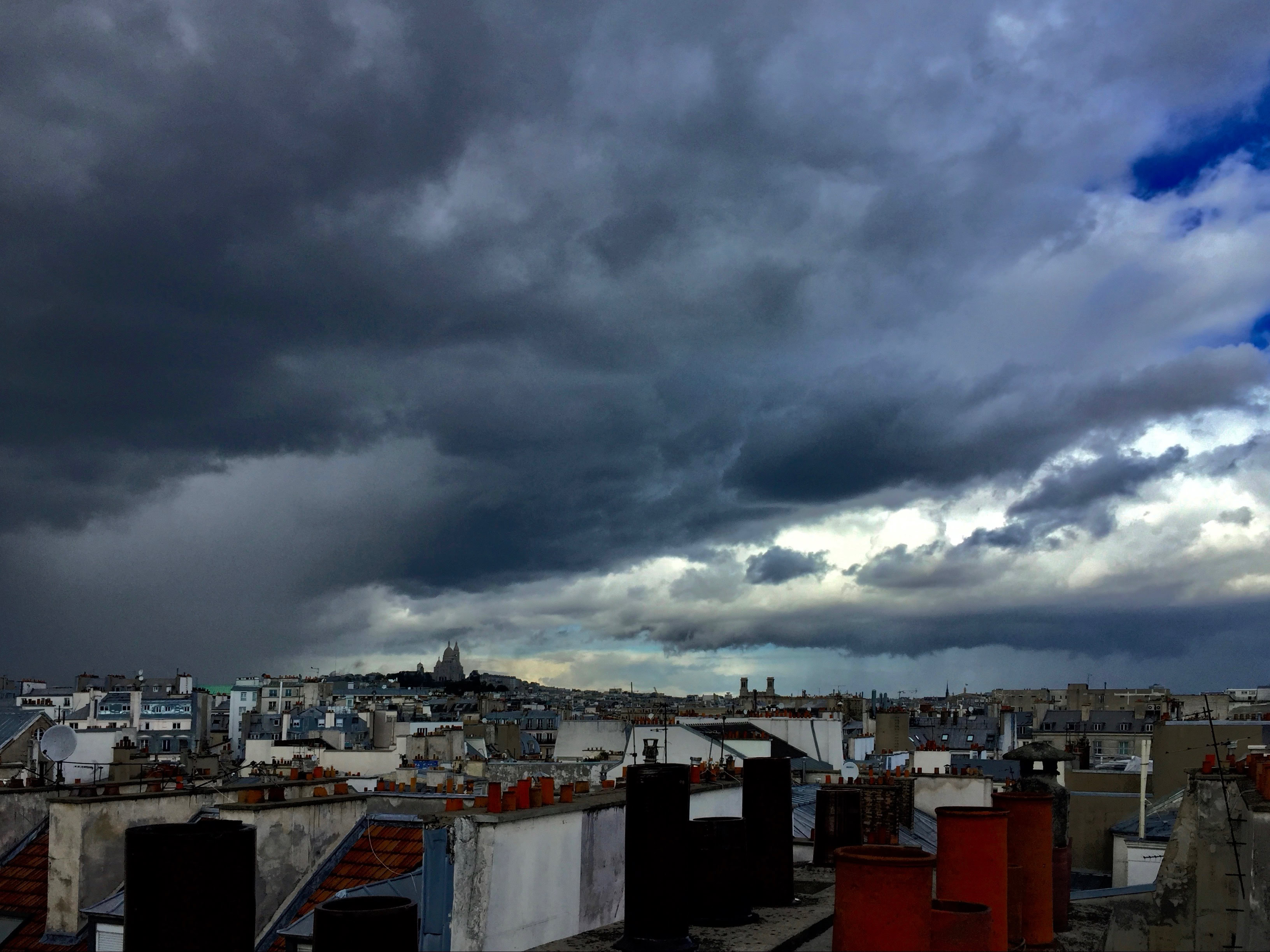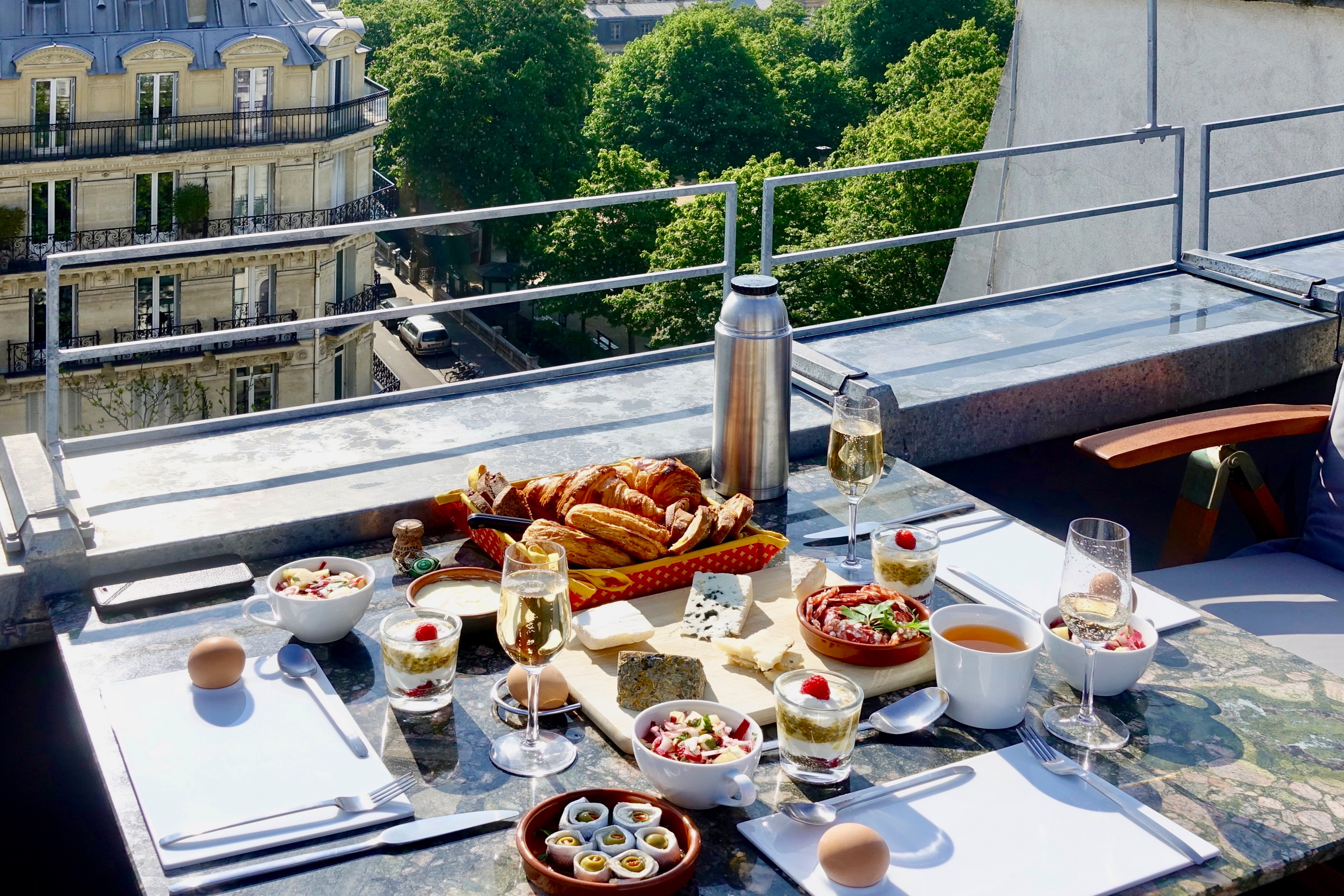 Alle große Monumente sind von der Terrasse aus zu sehen, von Sacré Cœre über Opéra, La Défense nach Süden, über den Eiffelturm, den Tour Montparnasse, St. Sulpice, St. Eustache, Tour Saint Jacques, Pantheon, Notre Dame, das Centre Georges Pompidou, Gaîté Lyrique und den Square Émille Chautemps gleitet der Blick weiter zu den historischen Gebäuden von Ars et Métiers.