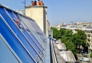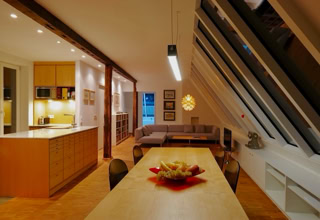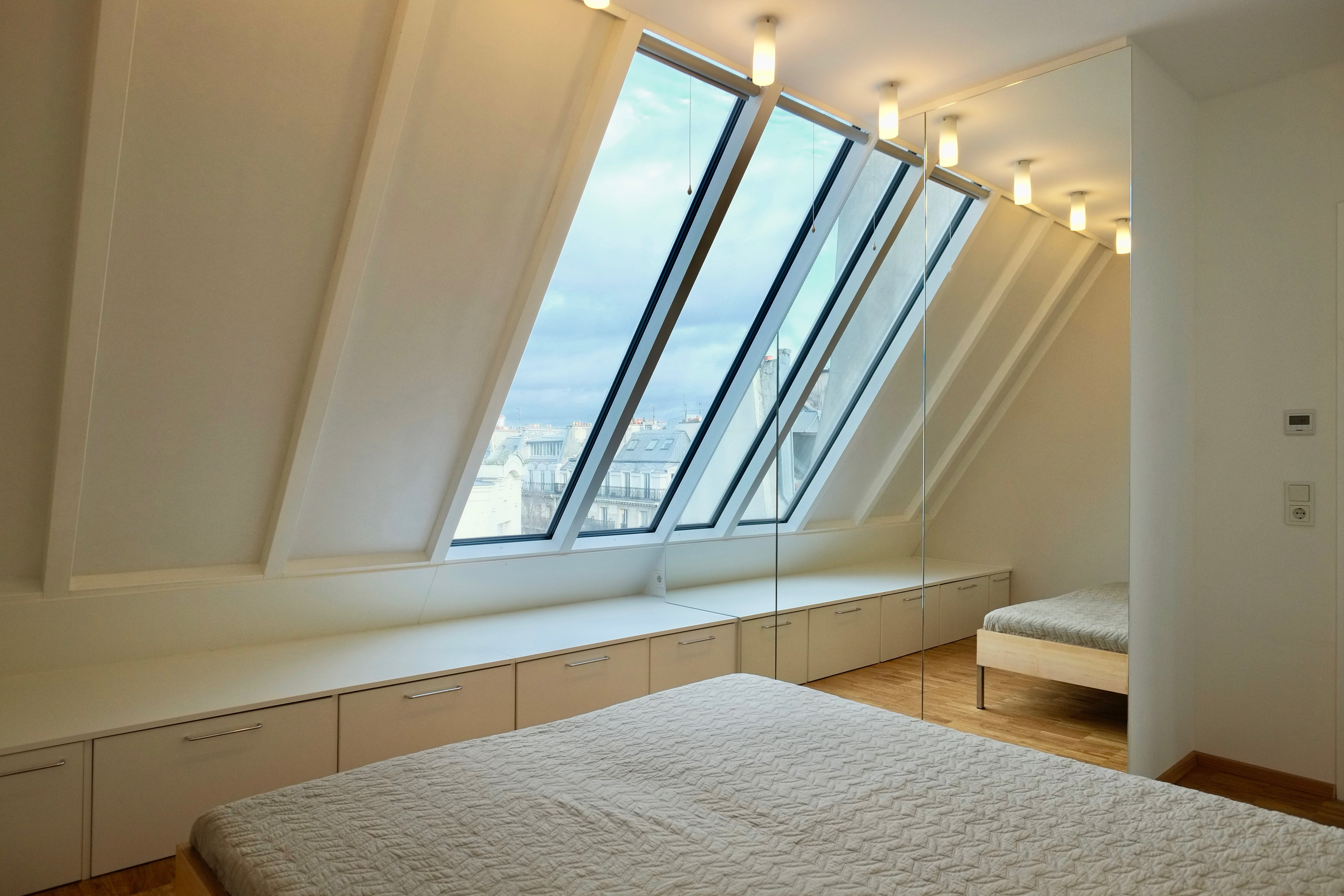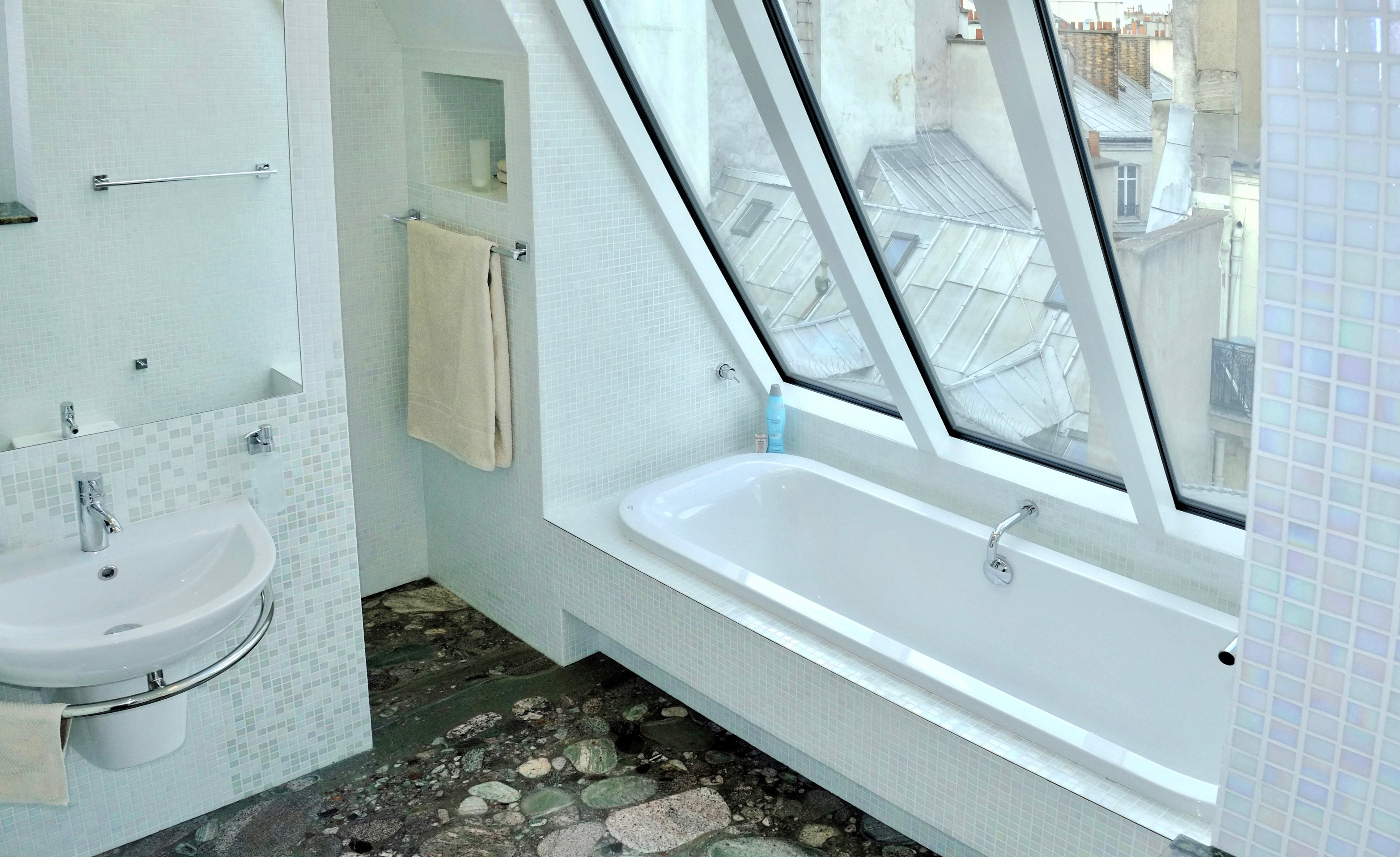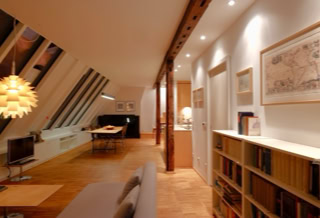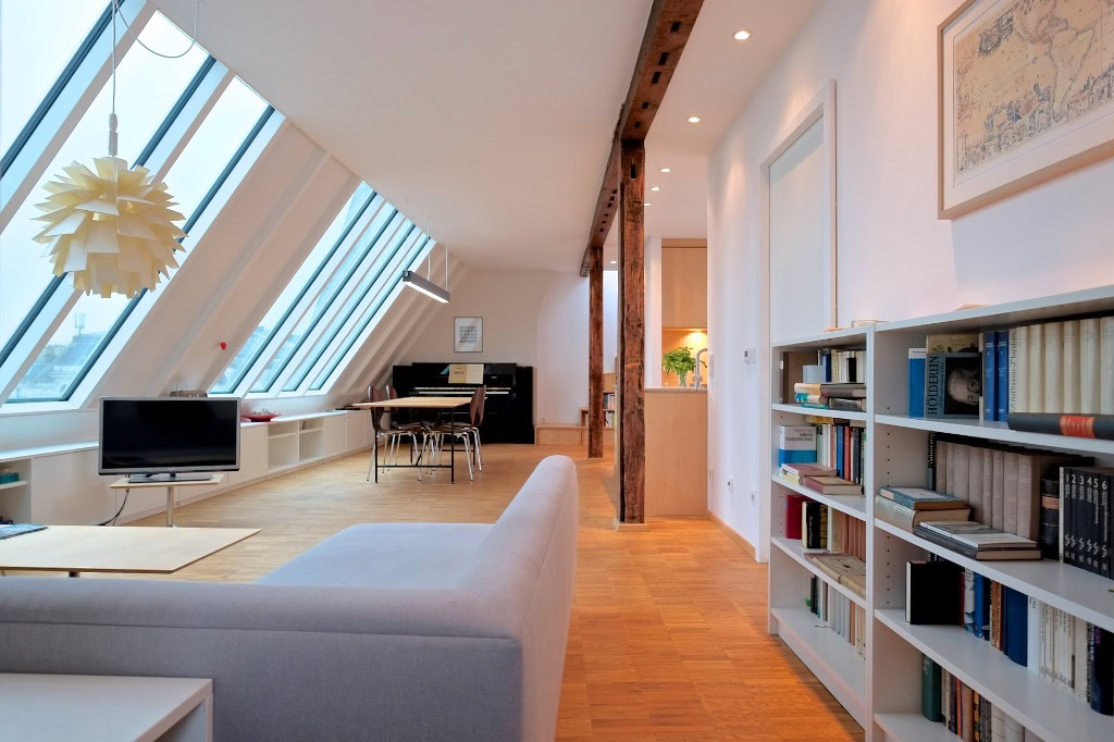 Das Gebäude ist ein Original von 1895. Das Dach bestand vor dem Umbau aus einem Hausflur umgeben von sieben ehemaligen „chambres de service“, den jeder Wohnung zugeordneten Dienstmädchenzimmern. Nach vollständiger Entkernung entstand eine komplett neue geräumige Dachwohnung in modernster Passivhausbauweise.