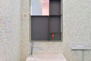 Direkt im Eingangsbereich gegenüber der Garderobe befindet sich noch ein zusätzliches „verspiegeltes“WC.