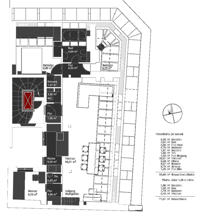 Im Haus befindet sich ein Geschäft für Kücheneinrichtung und hochwertige Materialien für Küchen und Bäder. In direkter Umgebung befinden sich Modegeschäfte, Boutiquen, Möbelhäuser (M) in allen Variationen.