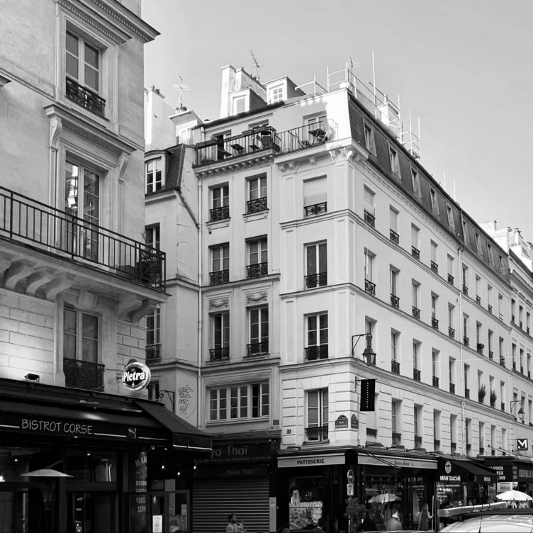 Über den Dächern von Paris, da ist ein Ort, an dem wir uns gerne aufhalten. Für einen „pied-à-terre“ haben wir ein kleines Studio saniert und zu einem Studio „à la Bohème“ gemacht. Dann trieb uns der Gedanke, auch mit Freunden in Paris sein zu können zum Kauf von sieben „chambre de service“. Diese vereinten wir zu einem großen hellen Appartement. Leitgedanke: Qualität und Nachhaltigkeit. Im Studio stand die Beschränkung auf das Nötigste und der Erhalt des historischen Charakters des denkmalgeschützten Gebäudes aus dem 16. Jahrhundert im Zentrum. Auf dem Boulevard de Sébastopol durfte es mehr sein. In der Struktur eines historischen Zinkblechdaches errichteten wir eine Panoramaverglasung und statteten die Wohnung in allen Bereichen sehr hochwertig aus, bekrönt von einer Dachterrasse, die einen herrlichen Blick über ganz Paris ermöglicht.