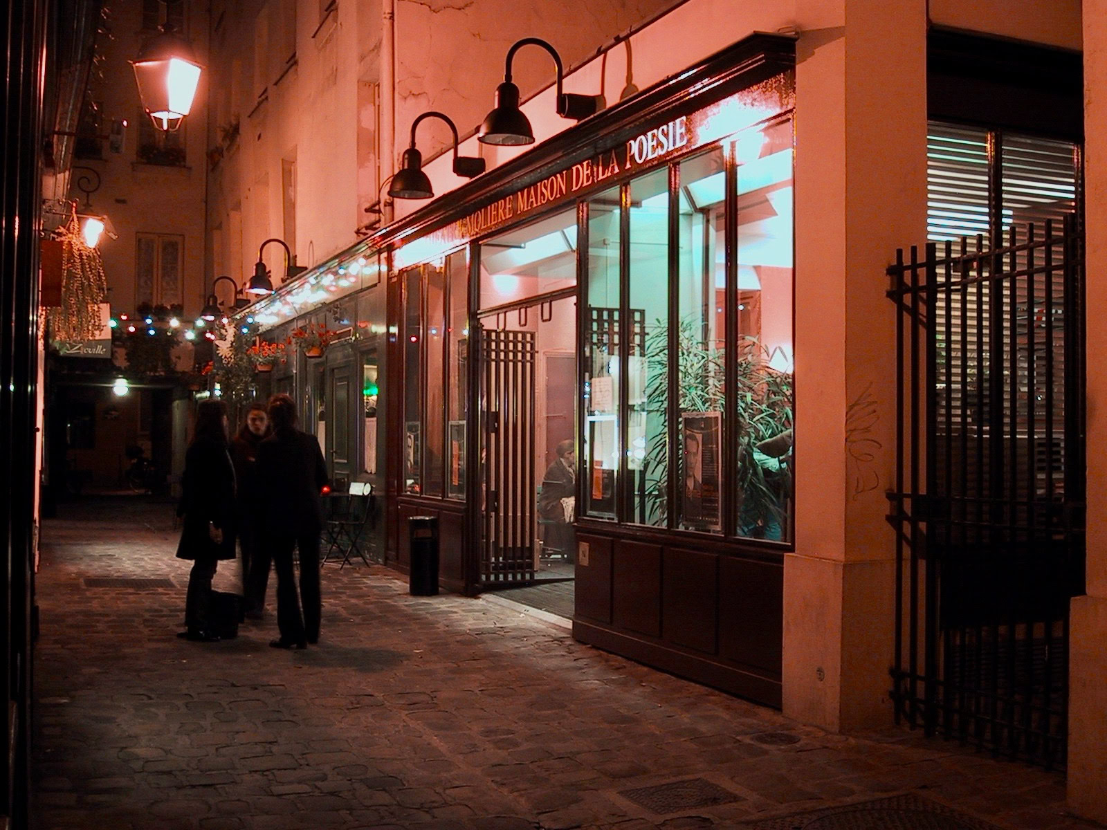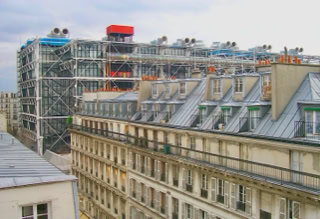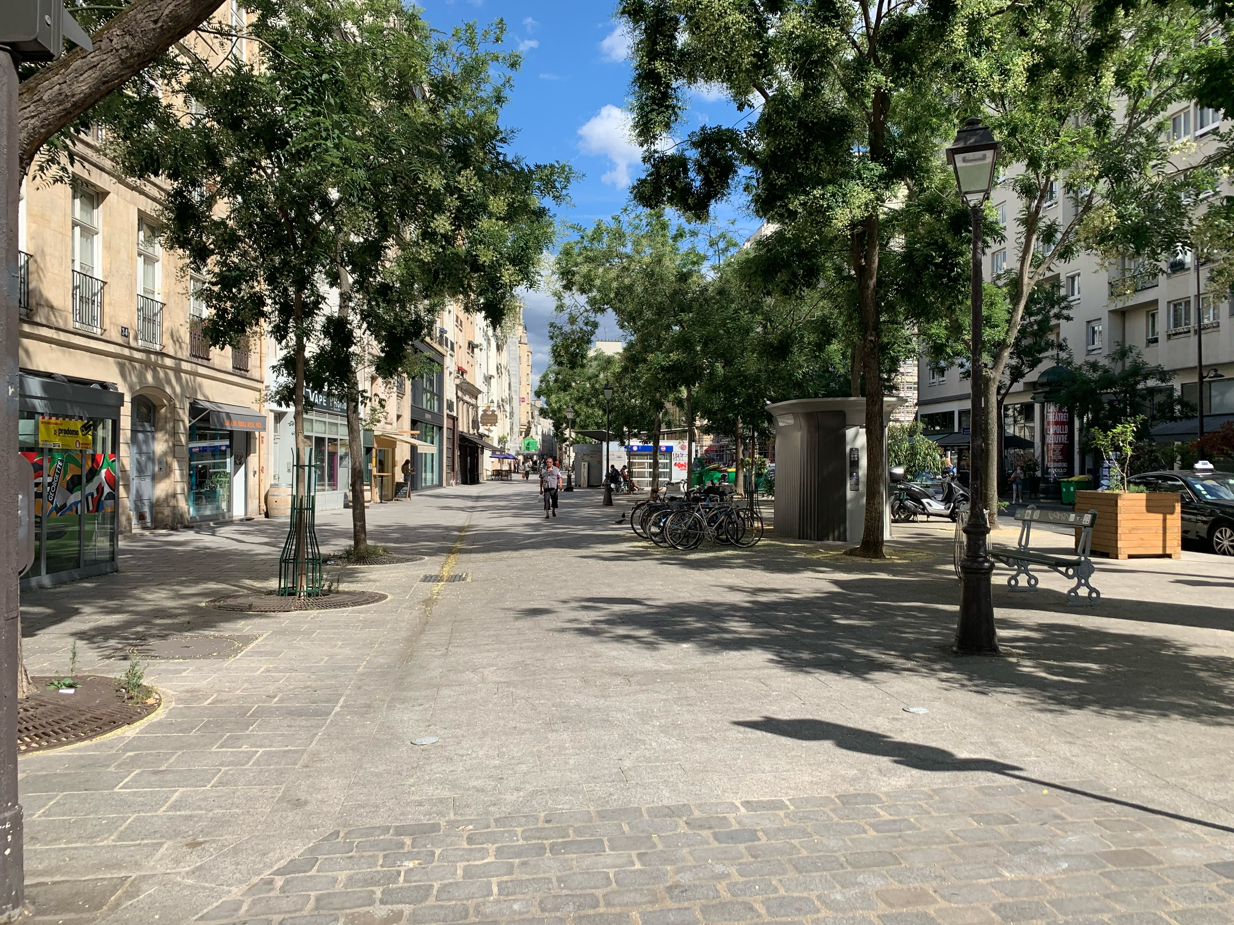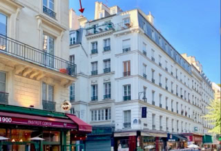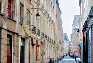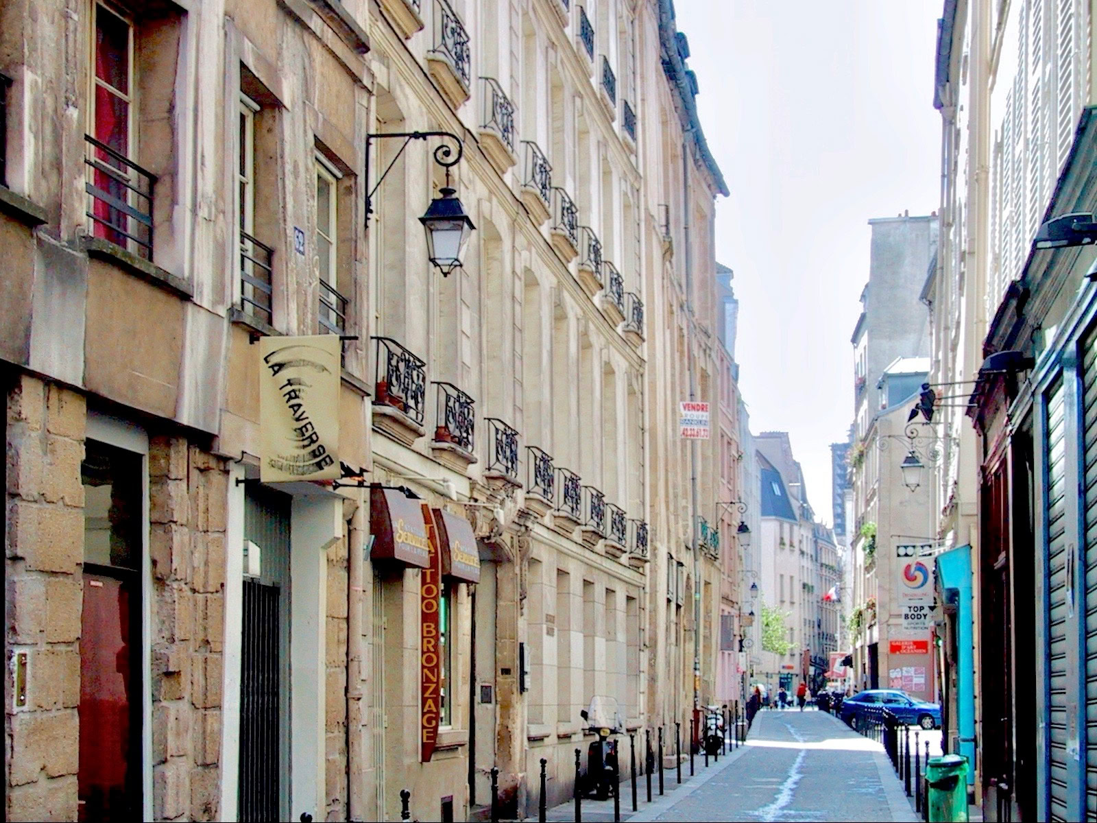 Zwischen Centre Pompidou (2min) und Les Halles (5min) Ecke Rue Quincampoix und Rue Rambuteau liegt das Studio. Die begrünte Rue Rambuteau ist Bestandteil der neuen Fußgängerzone. Sie wird gesäumt von Bistros, Restaurants und kleinen Geschäften. Auf dem Blick von der Rue Saint Martin Richtung Boulevard de Sébastopol und Les Halles in der Abendsonne ist die erste Querstraße die Rue Quincampoix, die Galerienstraße mit der schönen Passage Molière.