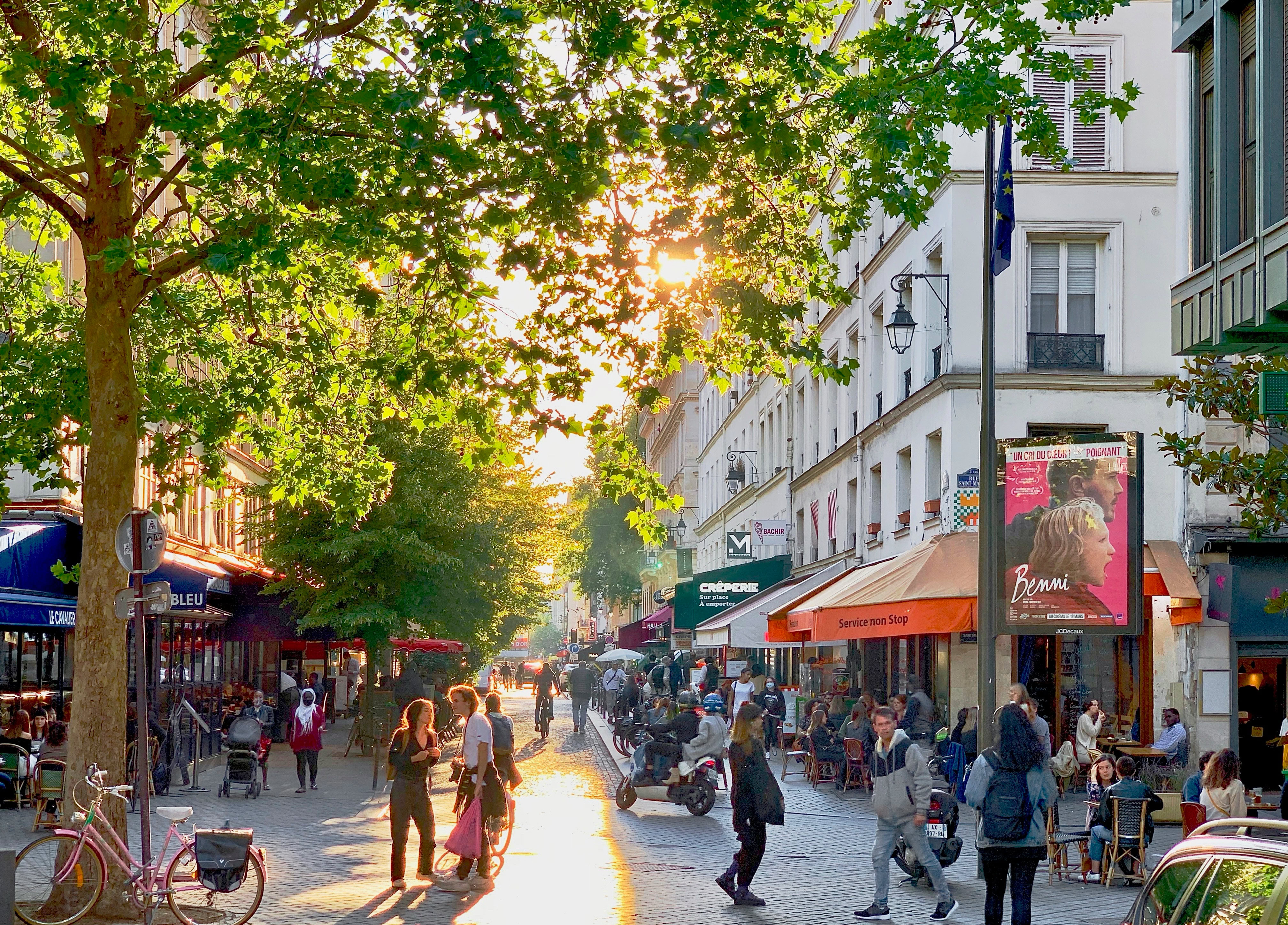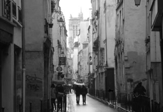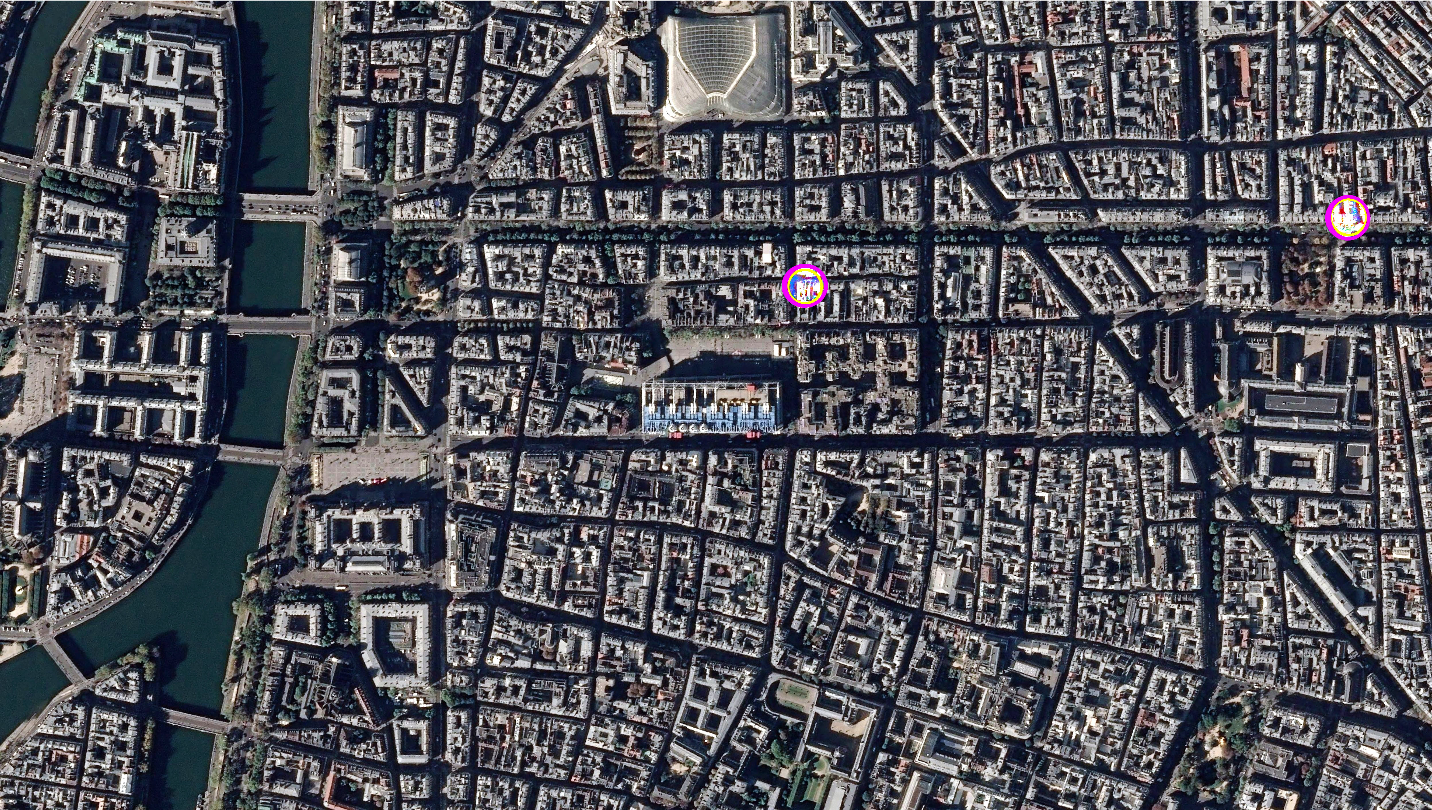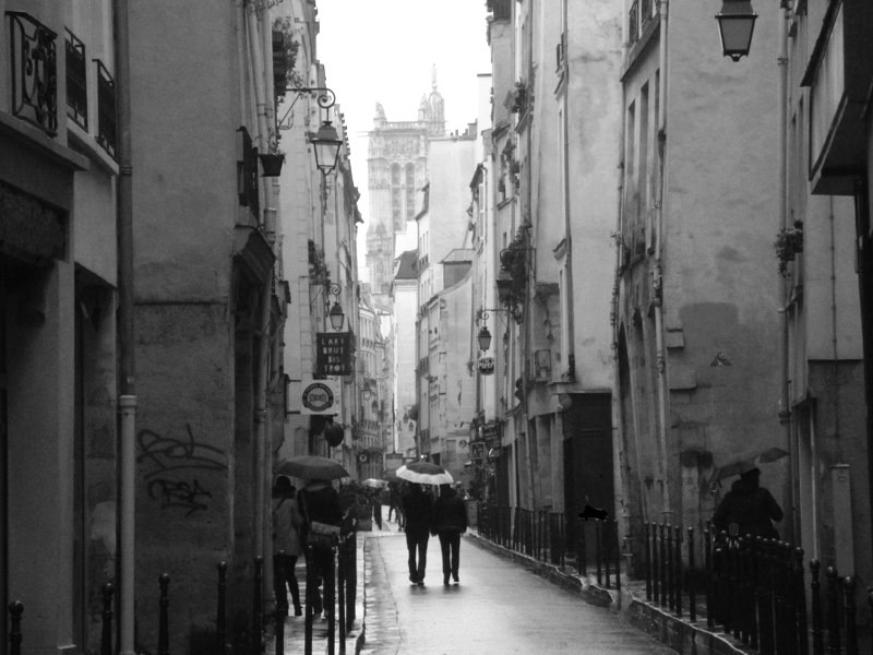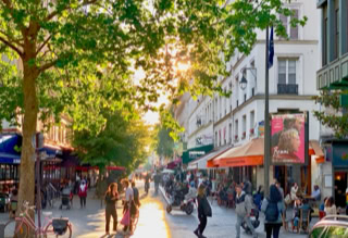 Zwischen Centre Pompidou (2min) und Les Halles (5min) Ecke Rue Quincampoix und Rue Rambuteau liegt das Studio. Die begrünte Rue Rambuteau ist Bestandteil der neuen Fußgängerzone. Sie wird gesäumt von Bistros, Restaurants und kleinen Geschäften. Auf dem Blick von der Rue Saint Martin Richtung Boulevard de Sébastopol und Les Halles in der Abendsonne ist die erste Querstraße die Rue Quincampoix, die Galerienstraße mit der schönen Passage Molière.