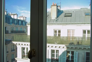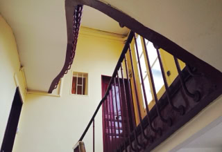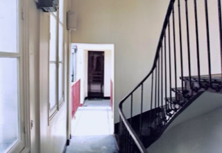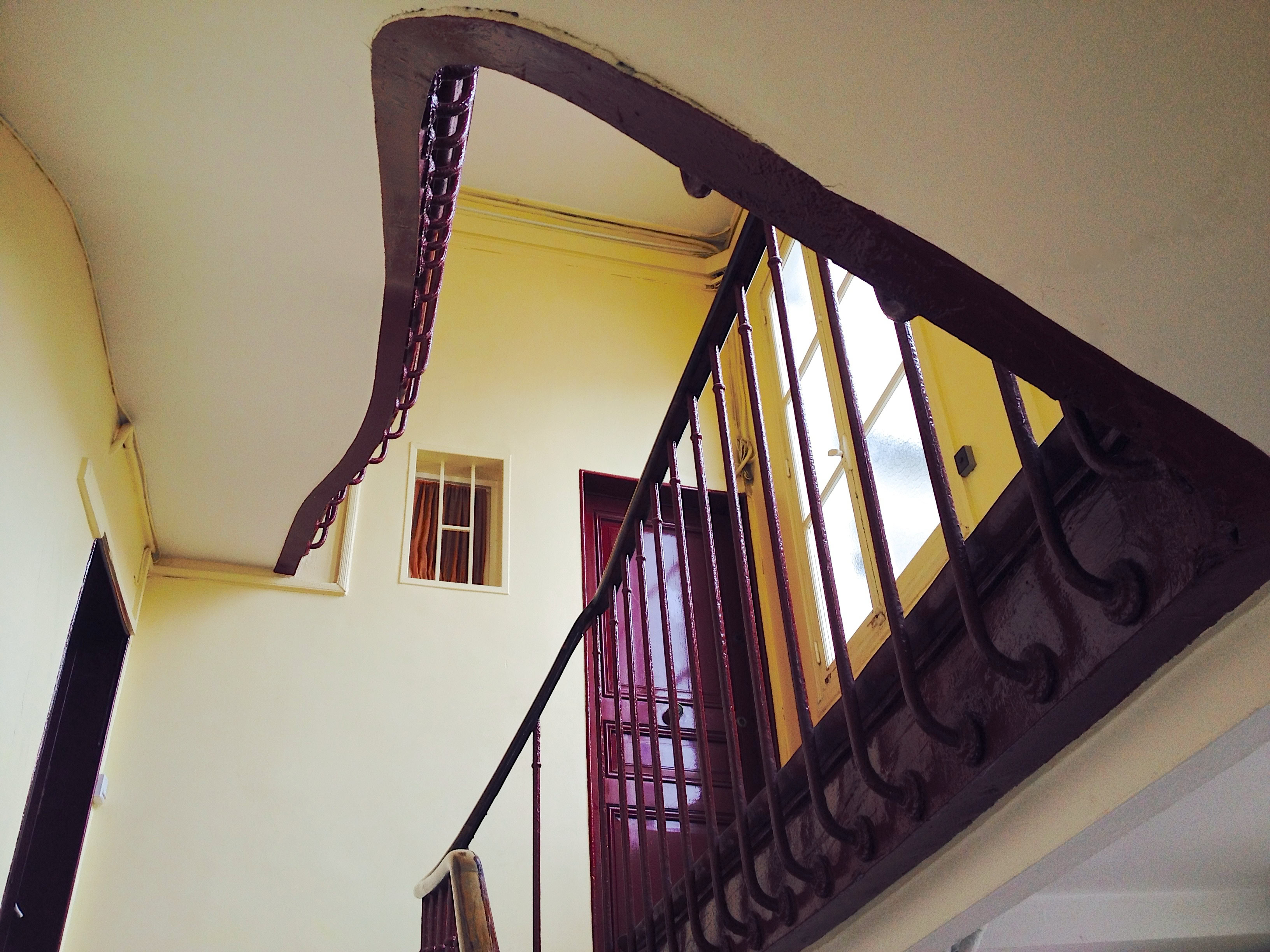 Die Wohnung erreicht man über ein recht steiles Treppenhaus, ein Aufzug wie im Appartement Bd. de Sébastopol hatte hier leider keinen Platz. Aber es ist noch authentisch in der Art der Pariser mittelalterlichen Bebauung und verbindet über eine Pasarelle die Wohnungen des Hinterhauses mit dem Treppenhaus.