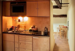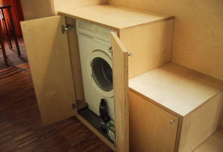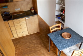 Das besondere an der Wohnung ist die fast vollständige Ausnutzung des Raumvolumens. Jedes noch so kleine Eckchen ist genutzt um die Wohnung optimal nutzen zu können. Obwohl das Studio winzig ist wirkt es nicht beengend.