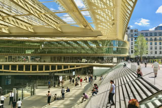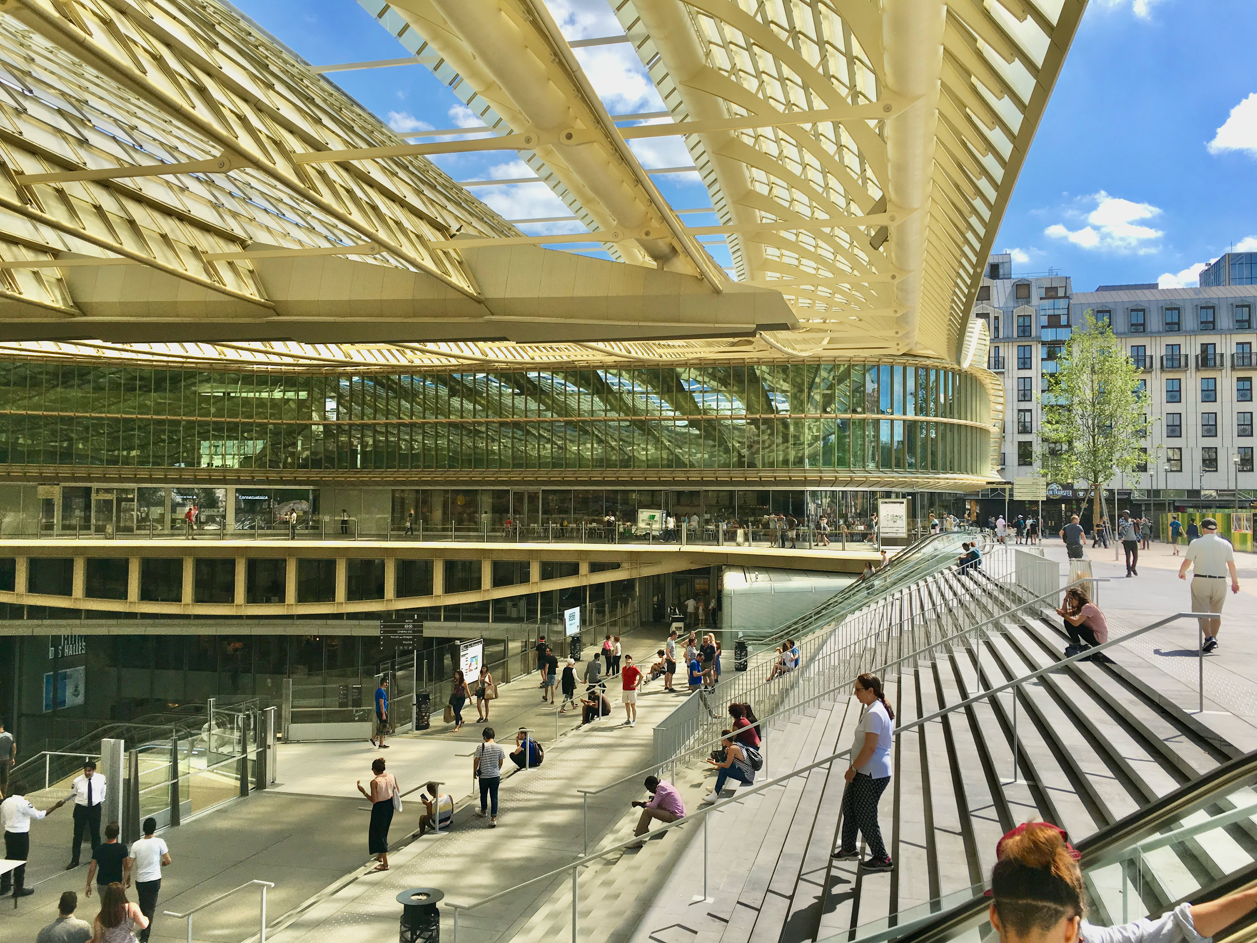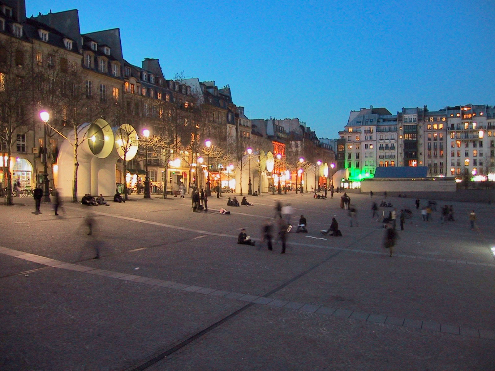 Auf der anderen Seite des Boulevard de Sébastopol ist wenige Schritte entfernt das neu gestaltete Einkaufszentrum und der zentrale Knotenpunkt für Metro und RER, das Forum des Halles. Während das Centre Pompidou die 80er Jahre repräsentiert wurden diese dort überwunden, das riesige teiltransparente Dach über dem Forum öffnet sich zur großzügig gestalteten Grünanlage vor St. Eustache.
