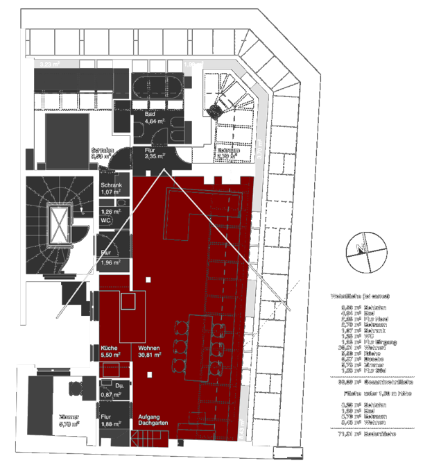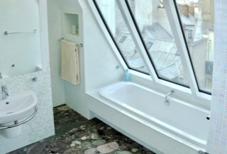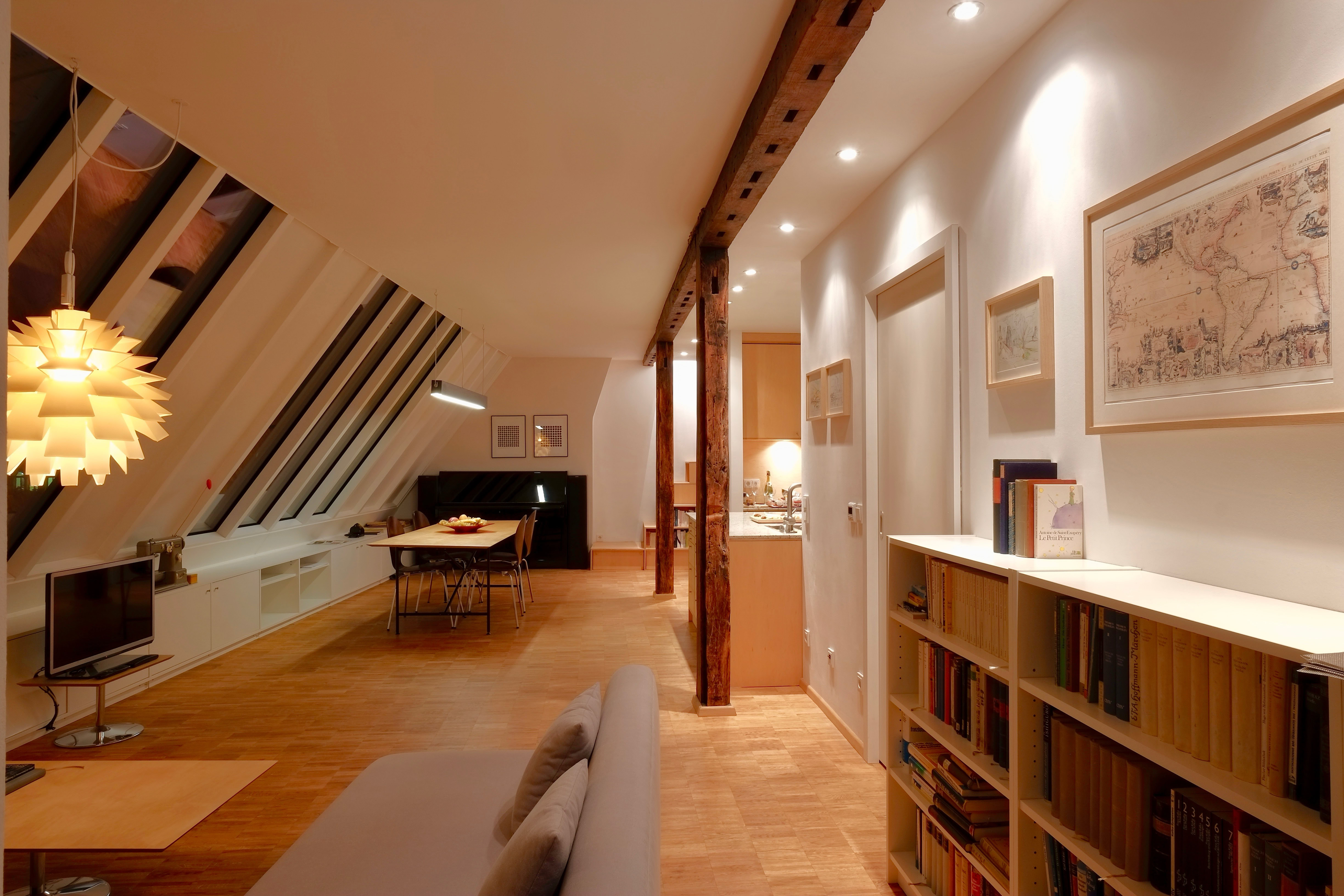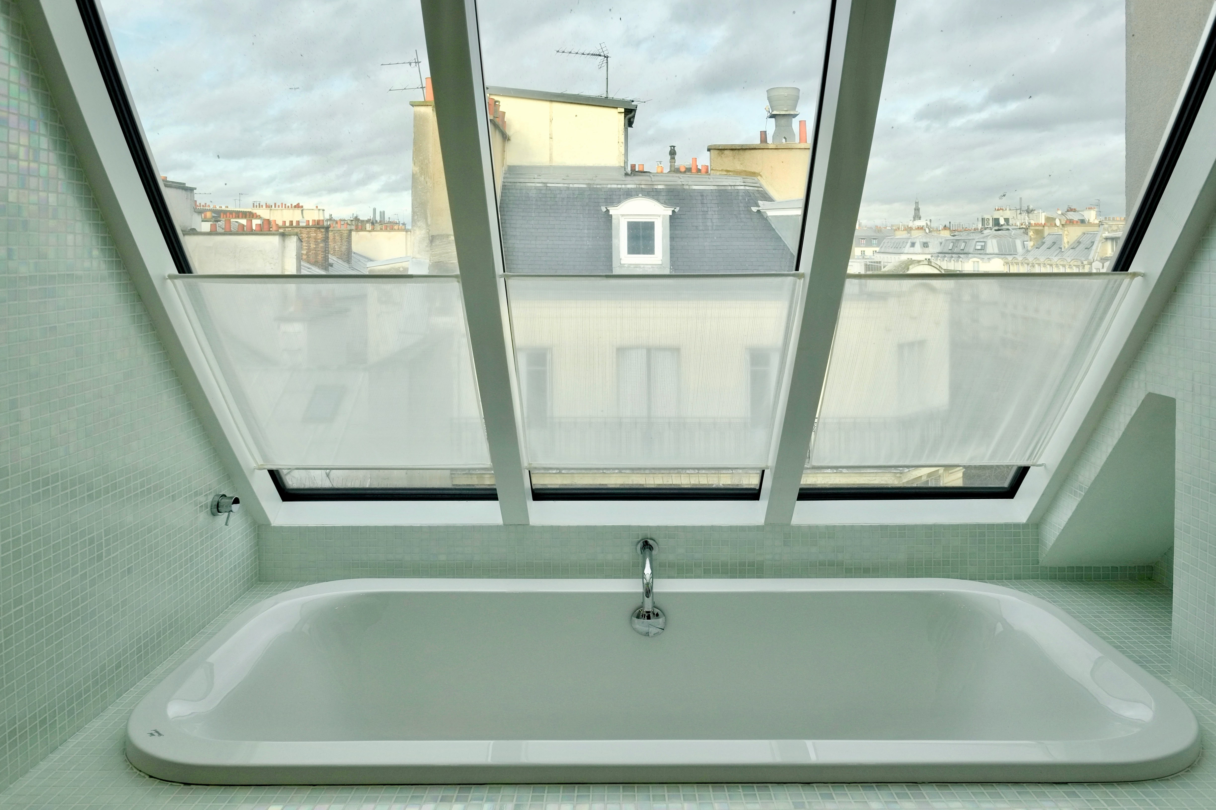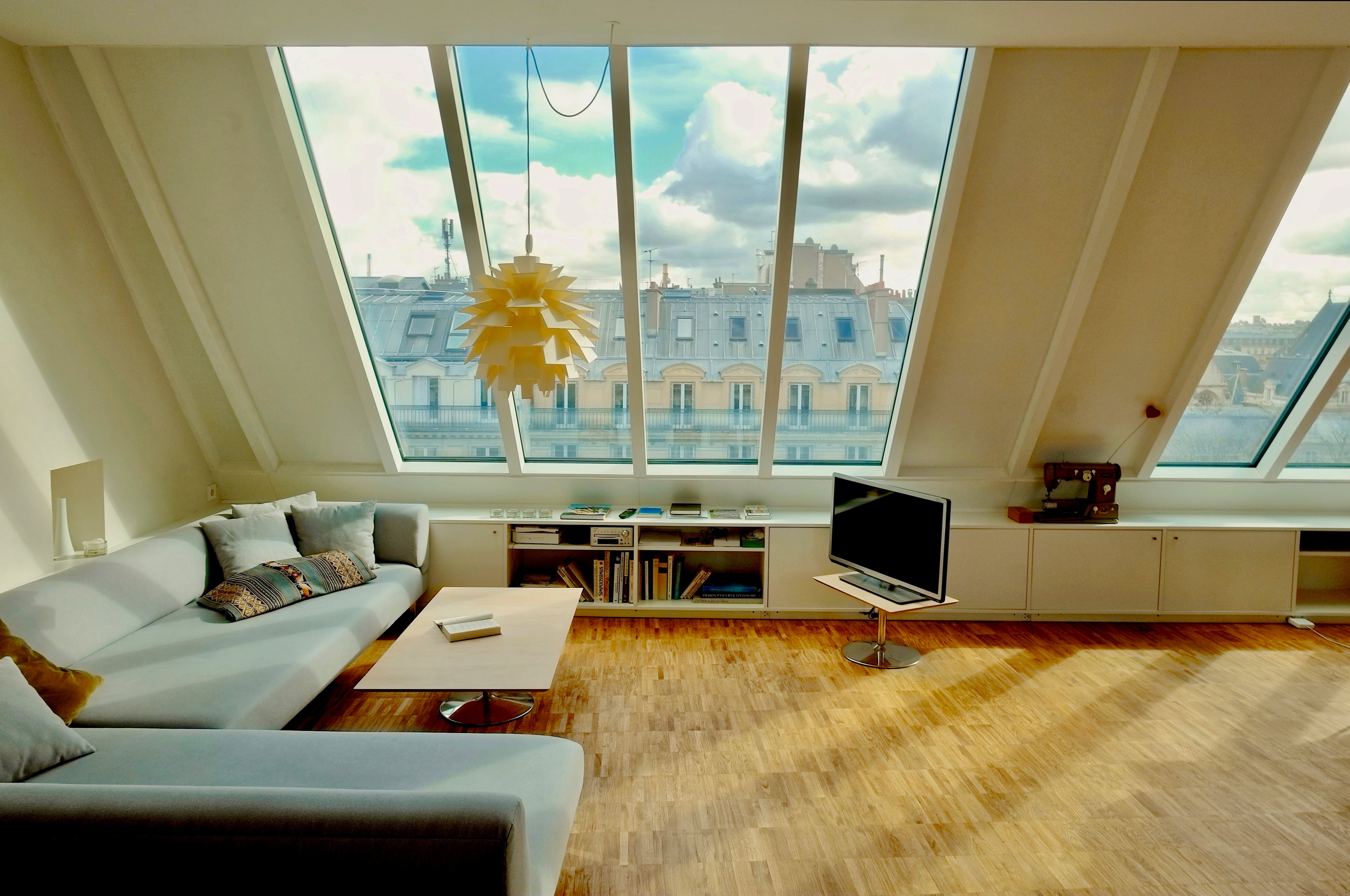 Das Gebäude ist ein Original von 1895. Das Dach bestand vor dem Umbau aus einem Hausflur umgeben von sieben ehemaligen „chambres de service“, den jeder Wohnung zugeordneten Dienstmädchenzimmern. Nach vollständiger Entkernung entstand eine komplett neue geräumige Dachwohnung in modernster Passivhausbauweise.
