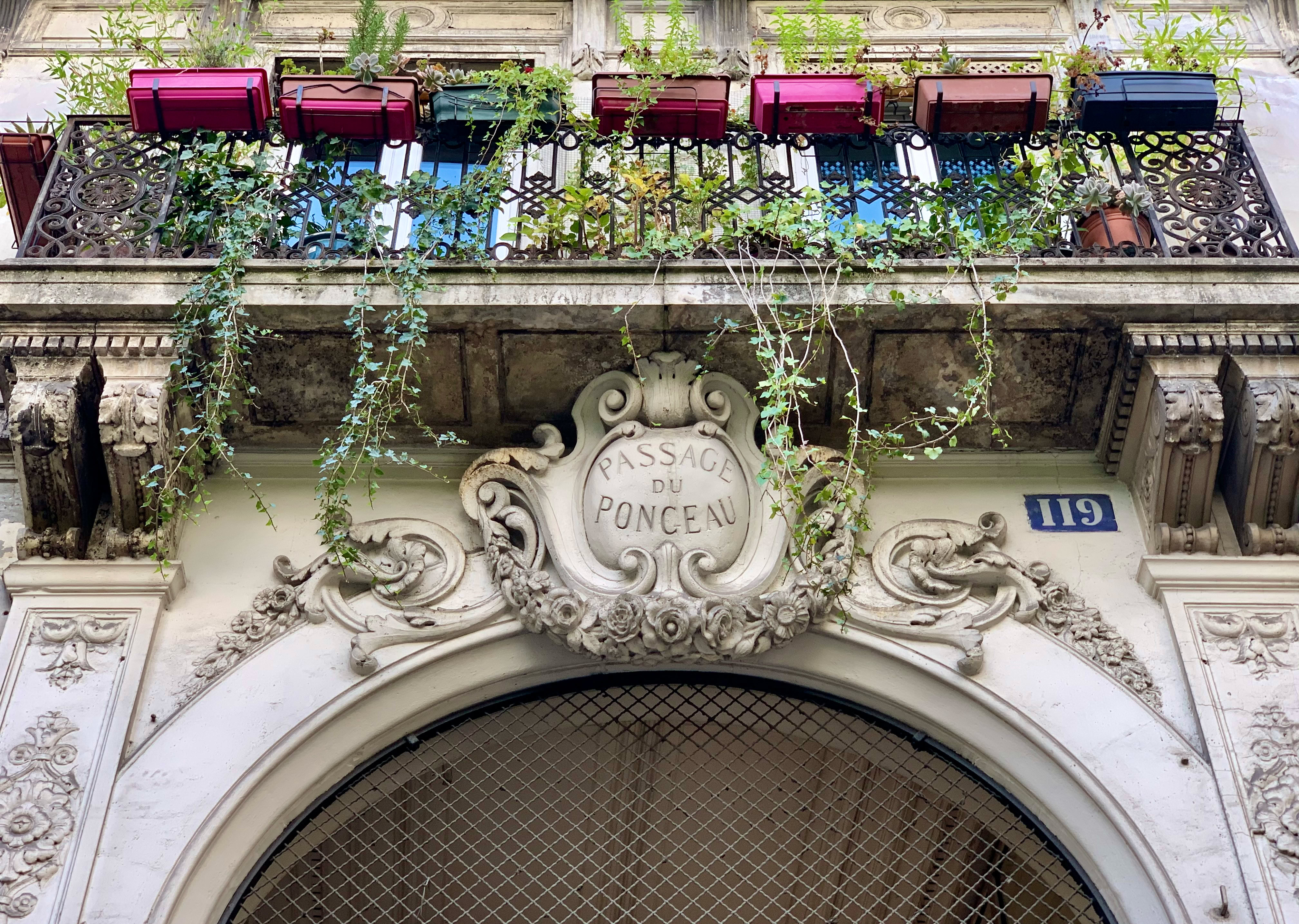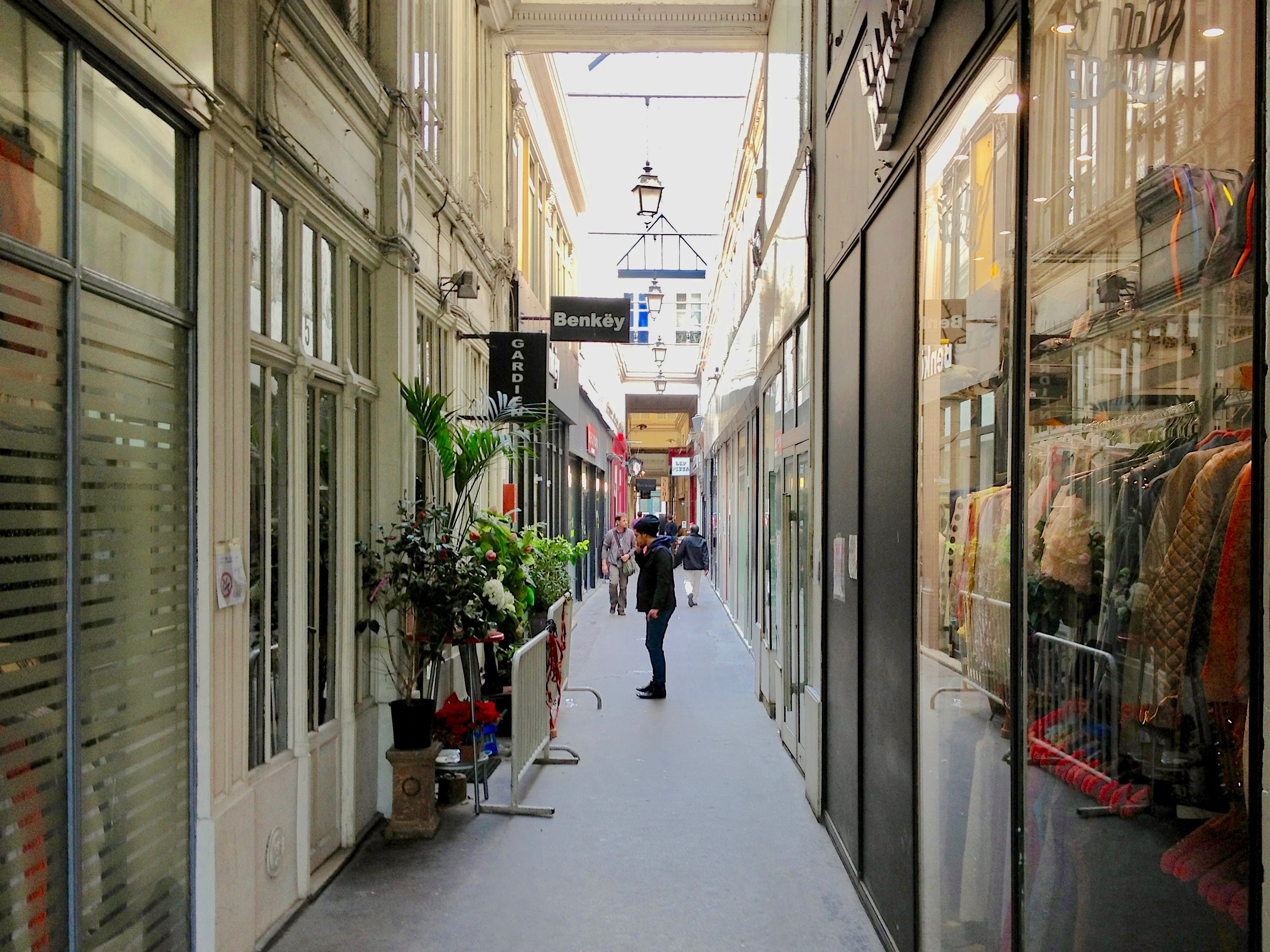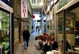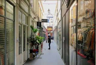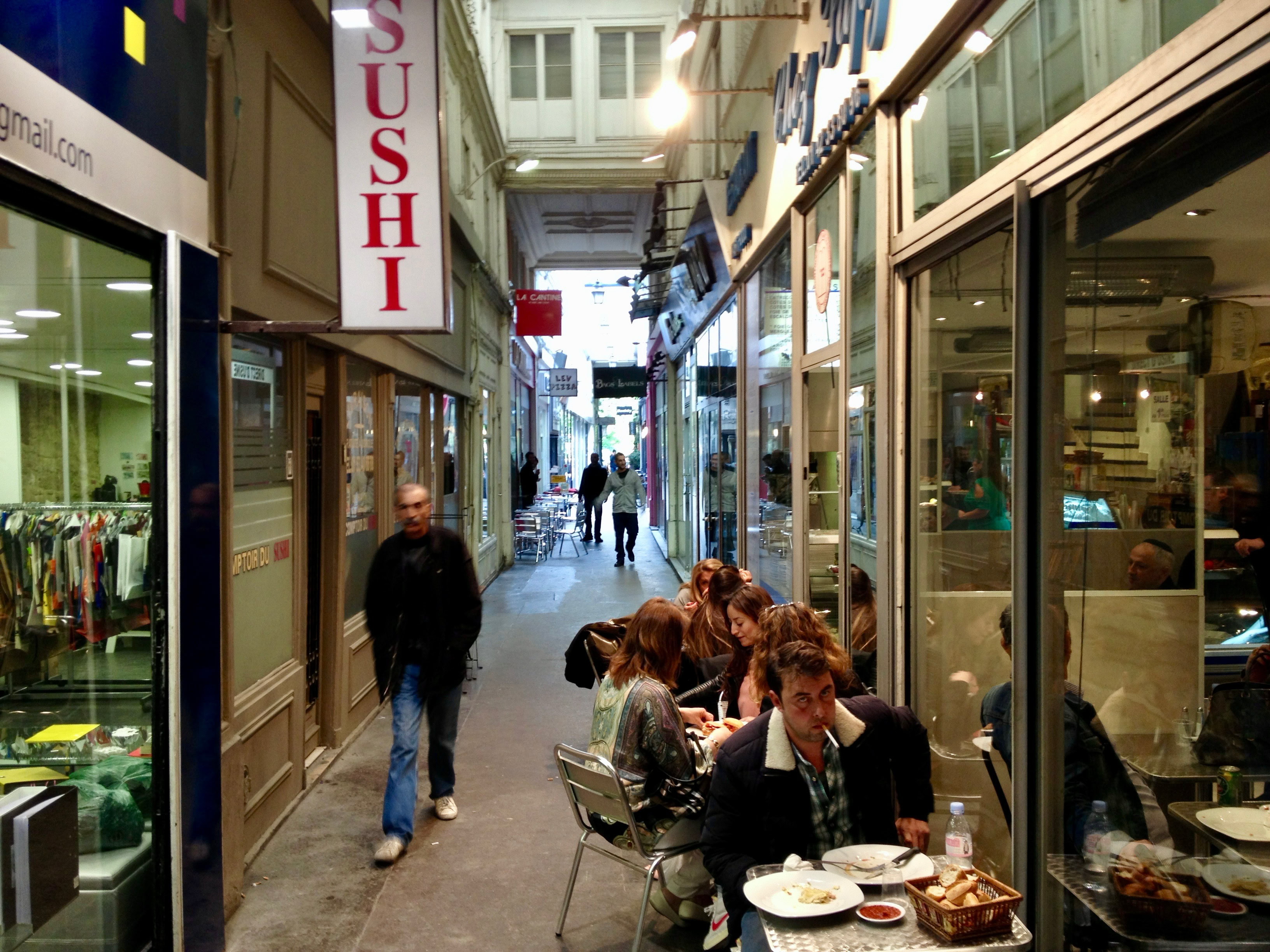 Die für diese Gegend typische „Passage Ponceau“ durchquert den Block ein paar Häuser von der Wohnung entfernt. Restaurants, Bistrots und Cafés (R) befinden sich in unmittelbarer Nähe mit sehr unterschiedlichem Angebot.