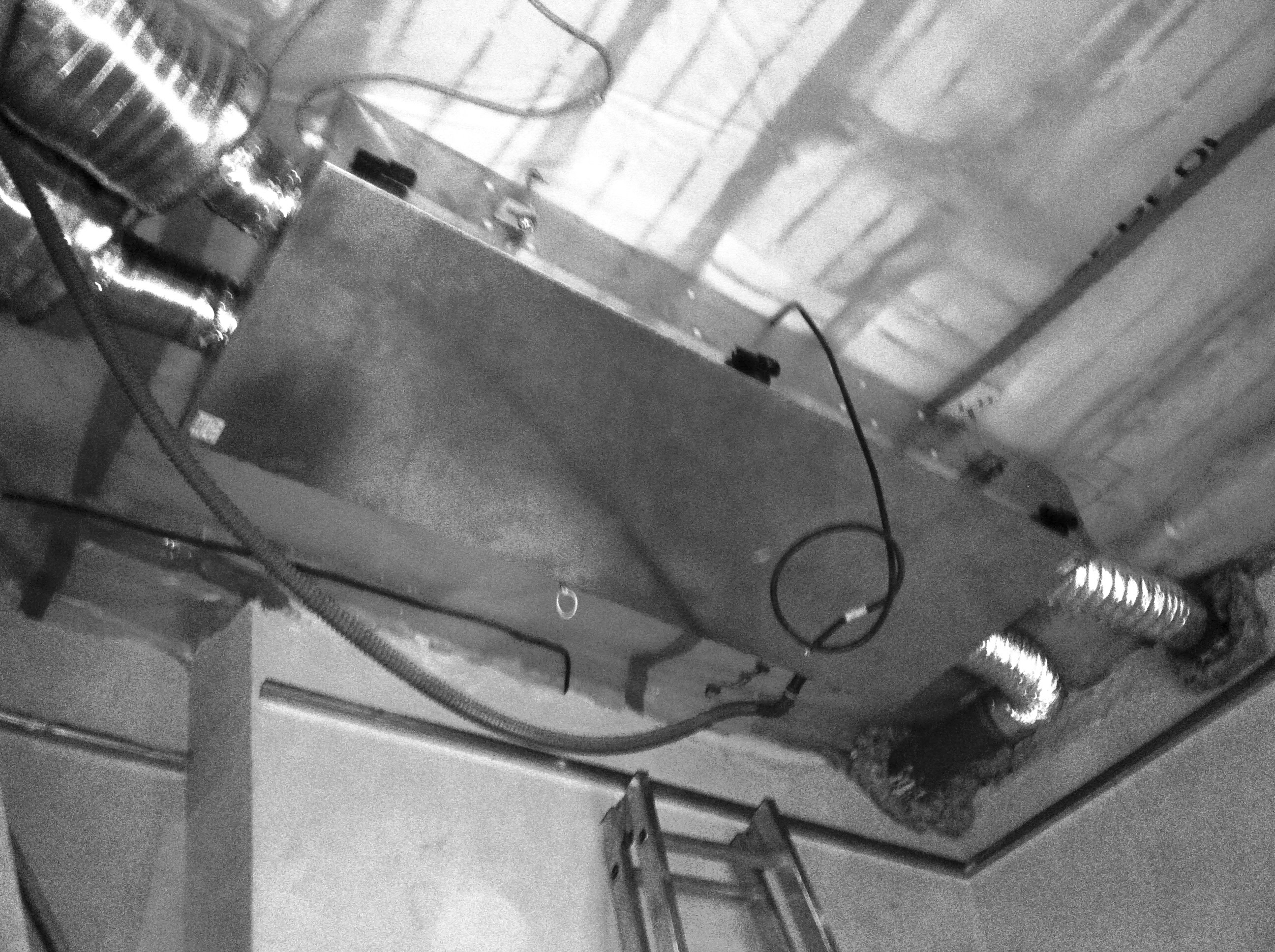 Die Wohnung ist mit einer Lüftungsanlage mit Wärmerückgewinnung ausgestattet. Dieser Betrieb wirk sowohl im Winter, wie auch im Sommer. Die Frischluft wird auf der Hofseite angesaugt, die Fortluft geht über einen Kamin.