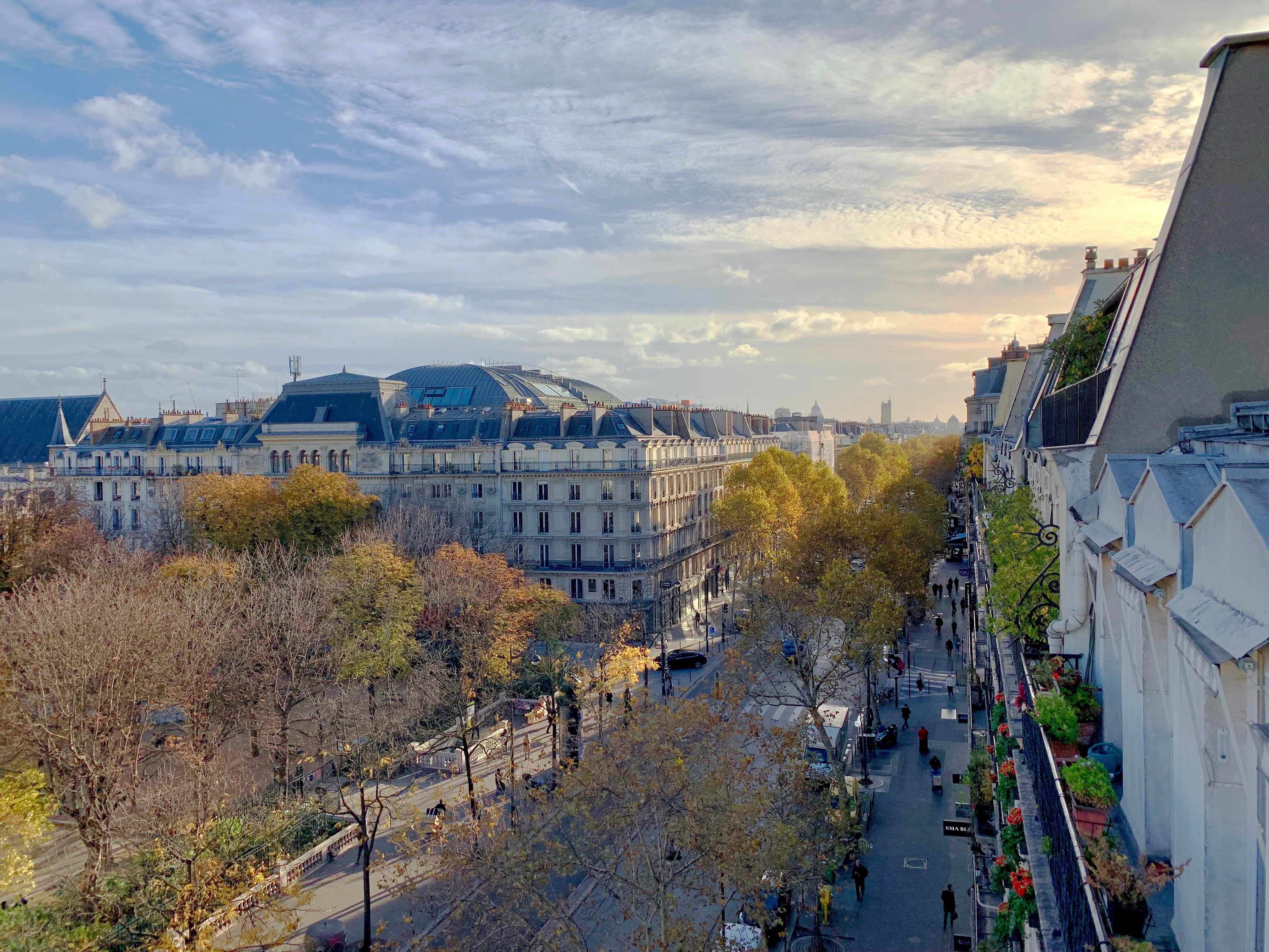 Einzigartig ist der Blick von der Wohnung und Terrasse auf den Square und den Boulevard. Zu jeder Jahreszeit hat die baumbestandene Anlage einen eigenen Charakter, mal zart, mal satt grün, mal im bunten Herbstgewand.