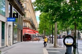 Direkt gegenüber liegt eine Apotheke, zwei Häuser weiter der Biomarkt „La Vie Claire“ der nächste große gut ausgestattete Supermarkt „Monoprix“ ist 150m entfernt, ein „Franprix“ ist 120m entfernt. Bäckereien (B) sind ebenfalls fußläufig erreichbar.